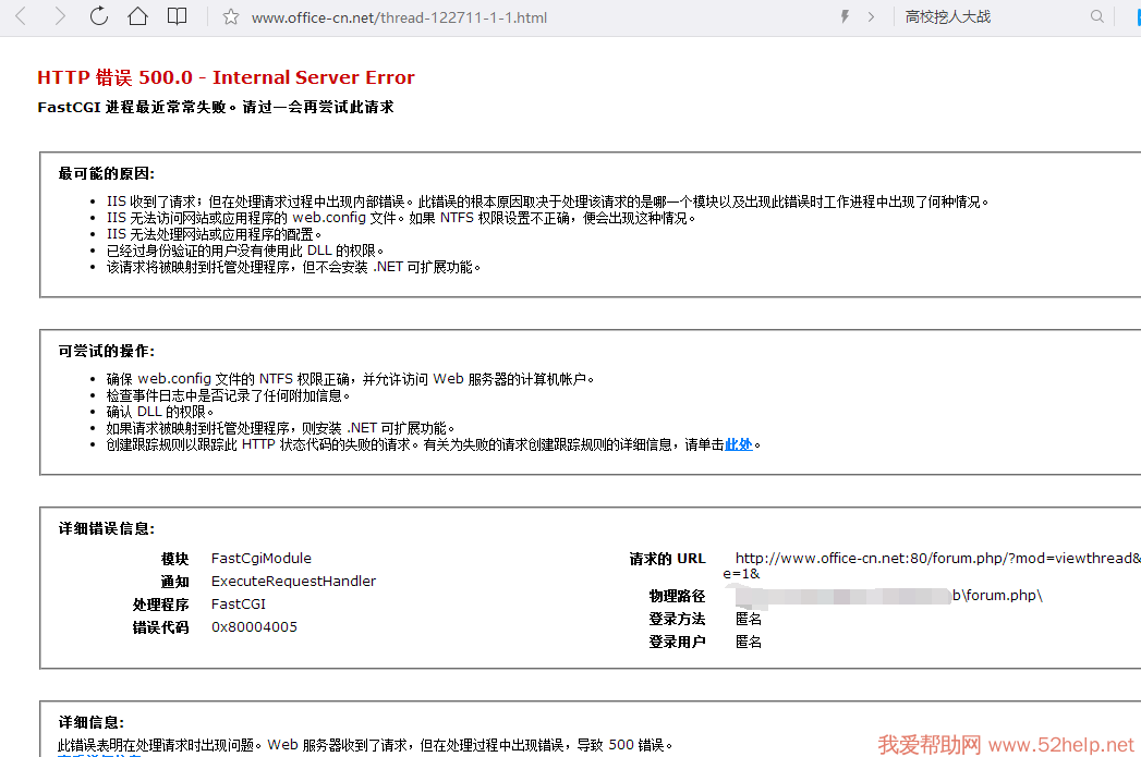 FastCGI 进程最近常常失败。请过一会再尝试此请求