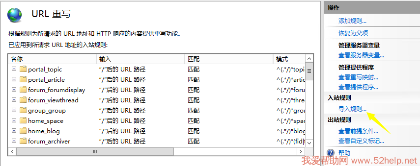 打开后,选择导入规则,再选择你原来的httpd.ini文件,导入