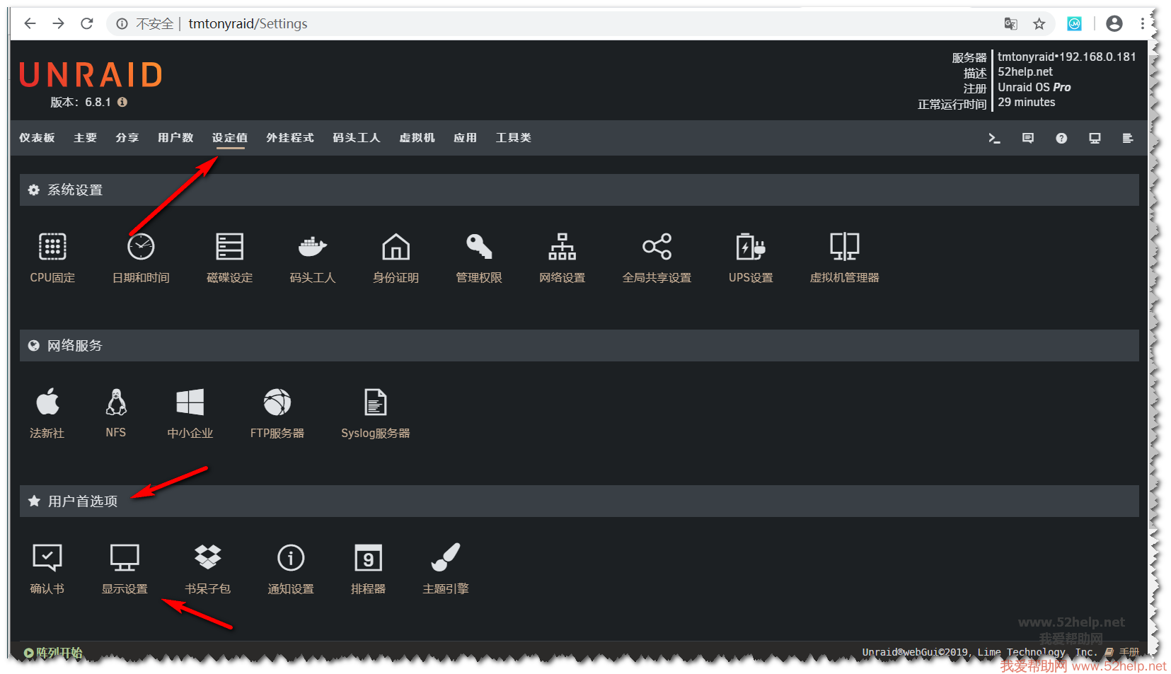 - 3.2. Unraid Server系统设置