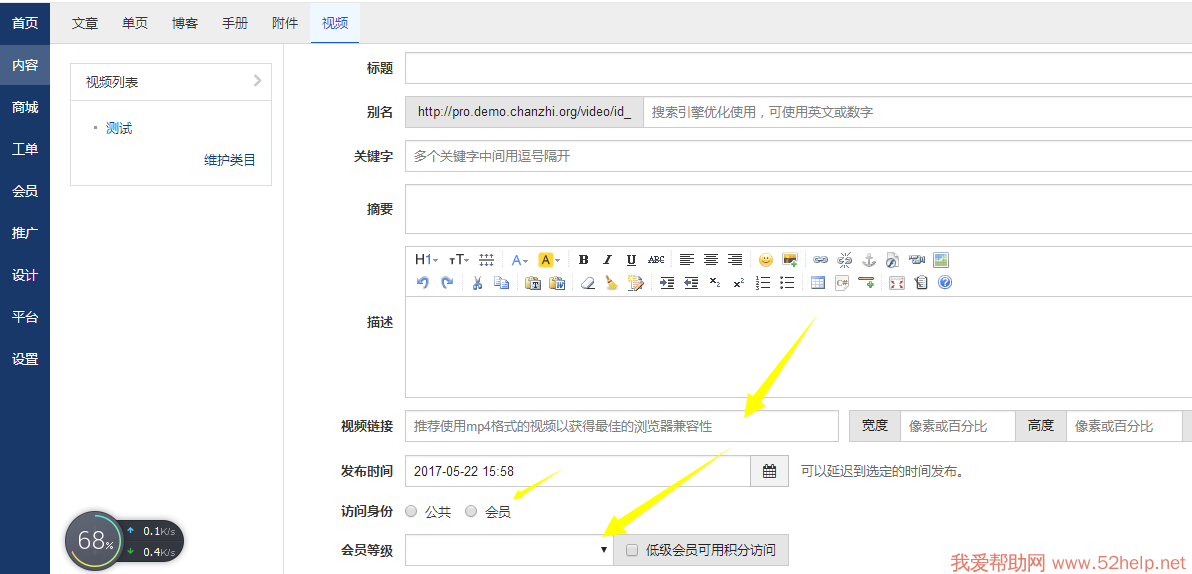 4.视频可控制是公开给所有会员还是限制指定的会员才能访问