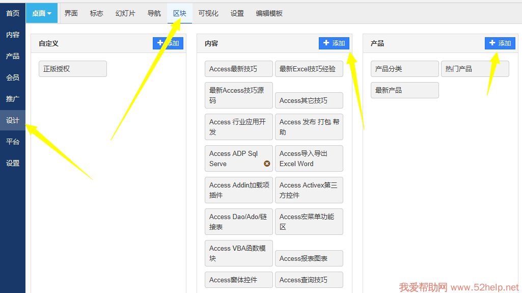 区块的创建很简单,在设计 --》区块--》添加新的区块,如下图所示