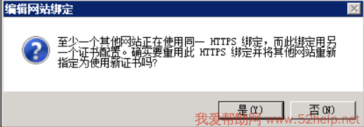 在给另一个网站绑定域名时,总提示至少一个其他网站在使用同一https绑定,保存后再打开,发现2个网站绑定的SSL证书是一样的,即使你选择是不同的证书,就好象2个证书分不清,都转向了同一个。那如何解决这个问题呢