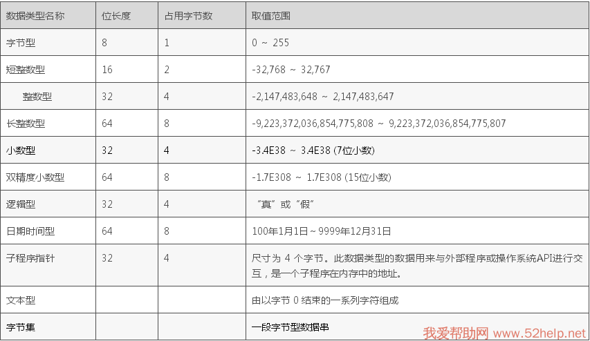 了解一下易语言的基本数据类型: