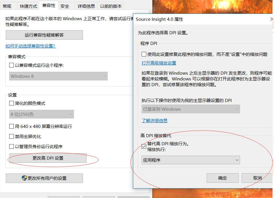 4. 如果某些软件还是模糊不清的话,感觉看着模糊,这时就需要改DPI设置了,右键软件程序,兼容性,有个DPI设置,改为应用程序