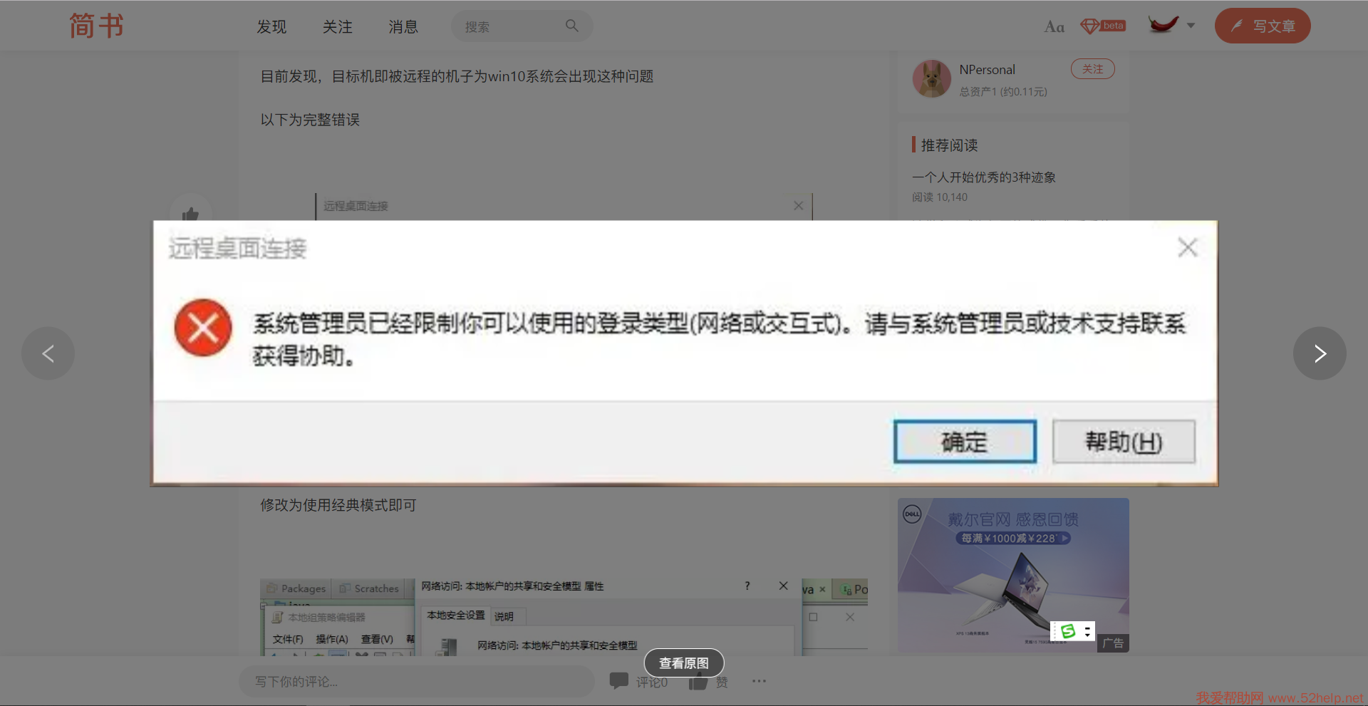 我的电脑不能被任何机器通过mstsc进行远程,远程点连接就报"系统管理员已经限制你可以使用的登录类型(网络或交互式)"