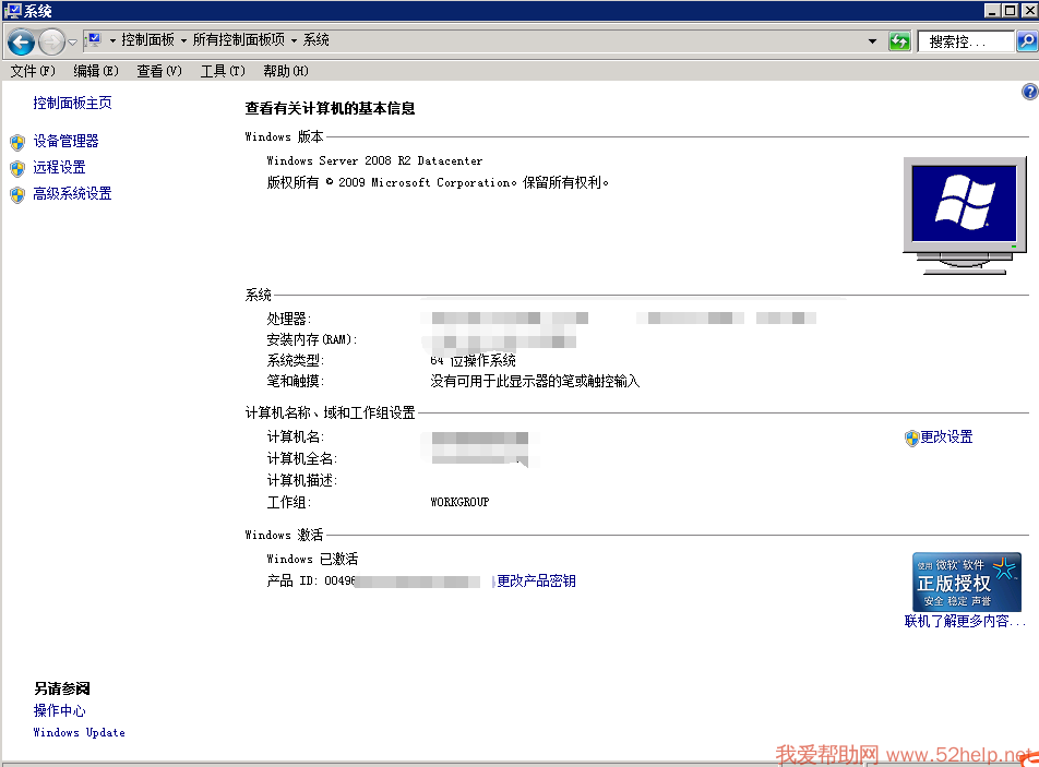 激活Windows Server 2008 r2 (DataCenter)中心版