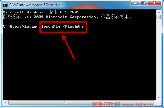 5. 输入ipconfig /flusbdns 回车确定。注意,ipconfig后面有空格