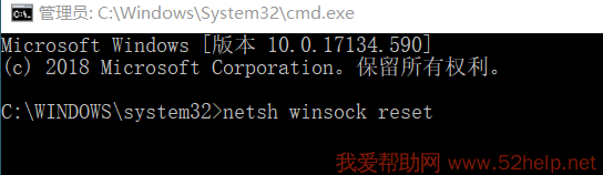 输入“netsh winsock reset”命令进行修复,然后重启修复