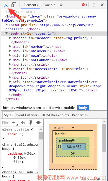 按快捷键“F12” 打开网页代码 调试窗口,点击第一个,在页面上选中元素。