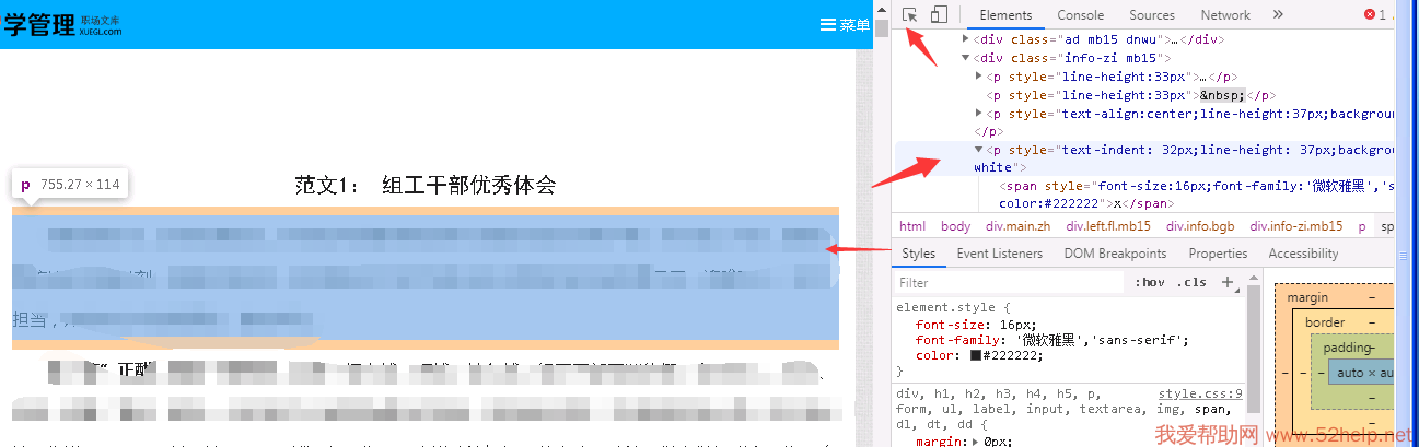 在选中元素的时候,对应的模块就会变颜色,此时,我们找到具体的模块点开,就能找到对应的文字复制了。
