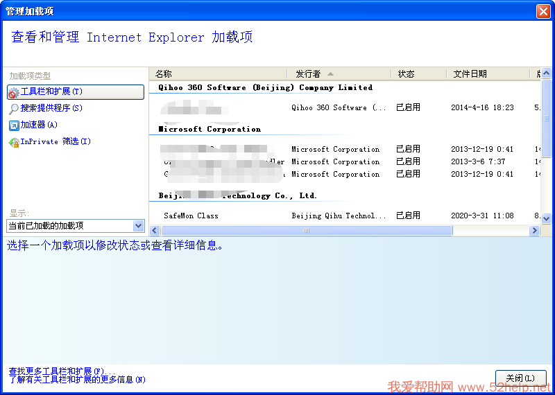 3. 进入浏览器Internet 选项,点击程序-管理加载项,之后在弹出的管理加载中,将一些可疑的加载项全部禁用即可