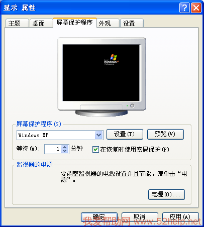 5. 设置屏幕保护,勾选“恢复时恢复密码保护”,当屏幕保护开启了,要取消屏幕保护时需要输入密码