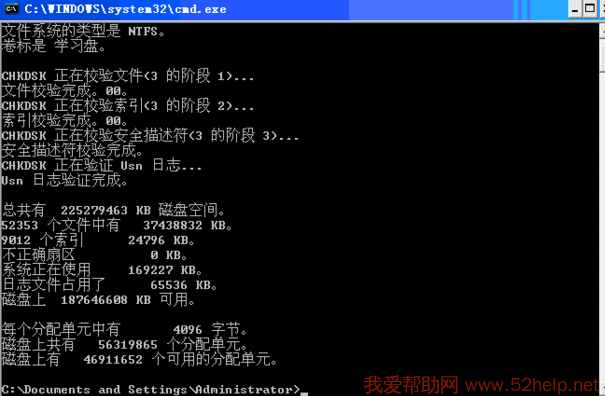 3. 按Enter键运行命令,系统会自动修复磁盘