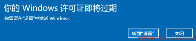 在win10系统使用一段时间后,会弹出“你的Windows许可证即将过期”。可以直接关闭,但是过一会儿后又会弹出来