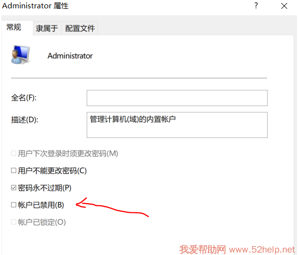 3. 双击该帐户,取消勾选“此帐户已禁用”选项,然后应用即可