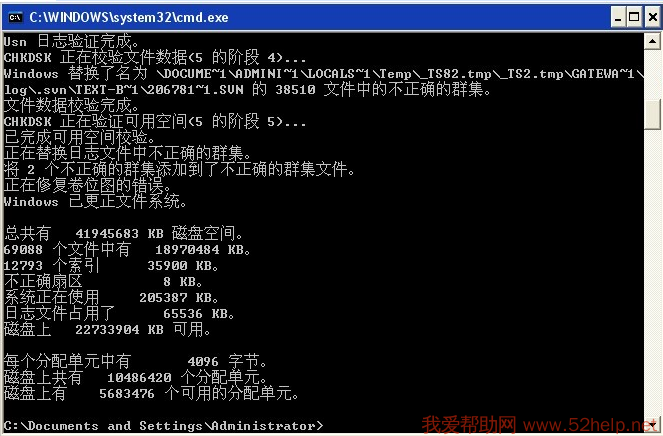 3. 用windows自带命令 chkdsk进行修复