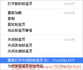 2. 右键地址栏,选择“重新打开关闭的标签页”,此效果上面是一样的。