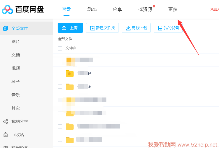 1、 点开百度网盘的菜单,点击更多