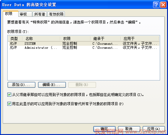 6.把最后的“用在此显示的可以应用到子对象的项目替代所有子对象的权限项目"选项勾上