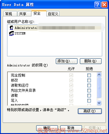 5. 打开“安全”选项卡,点击“高级”,打开文件夹的高级安全设置。