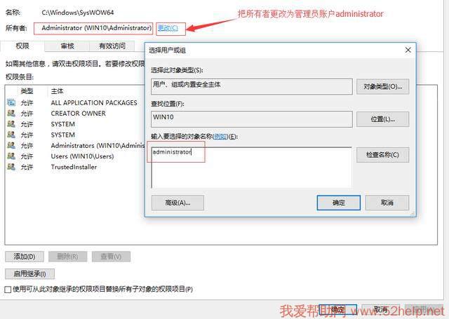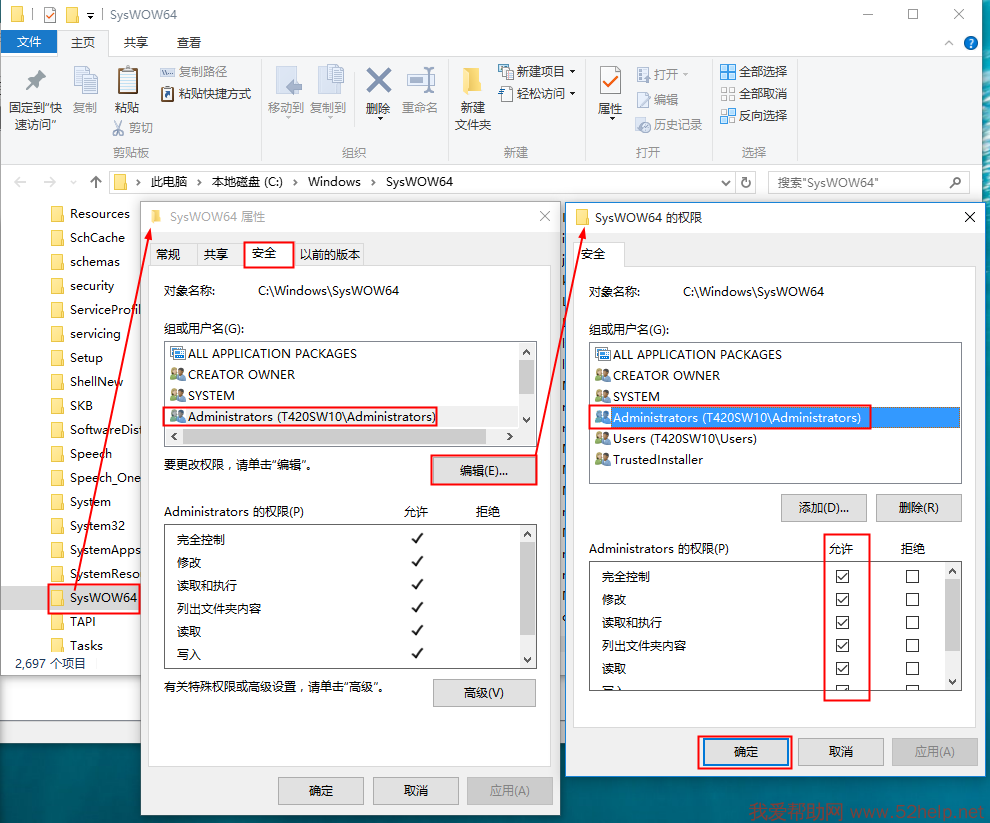 更改syswow64文件夹的权限,给予administrators组完全控制的权限