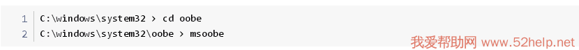 2.在命令提示符中输入 cd c:/windows/system32/oobe 回车运行