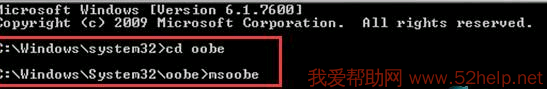 3.再键入msoobe,同样回车执行