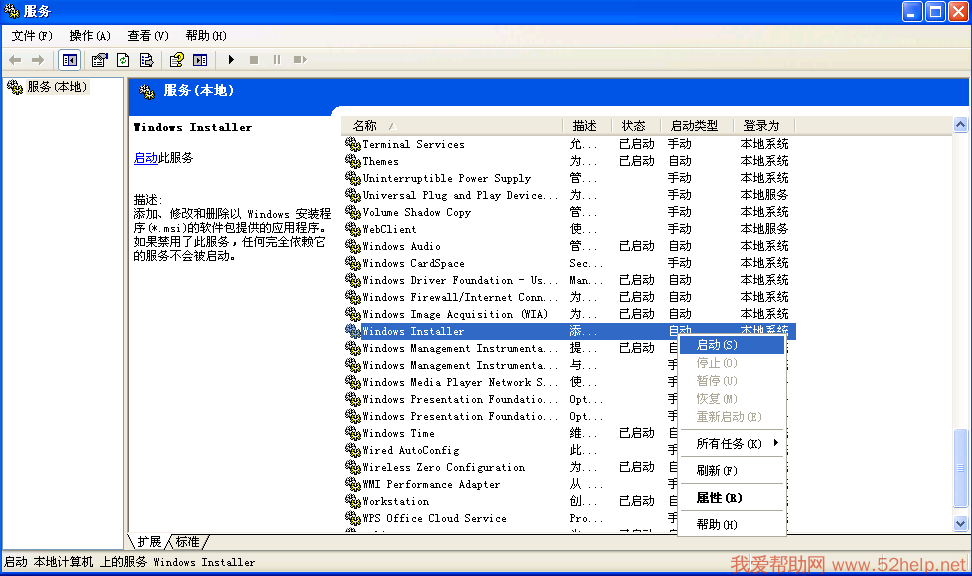 可以到“服务”中找到Windows Installer服务 启动。可以把启动类型改为自动。