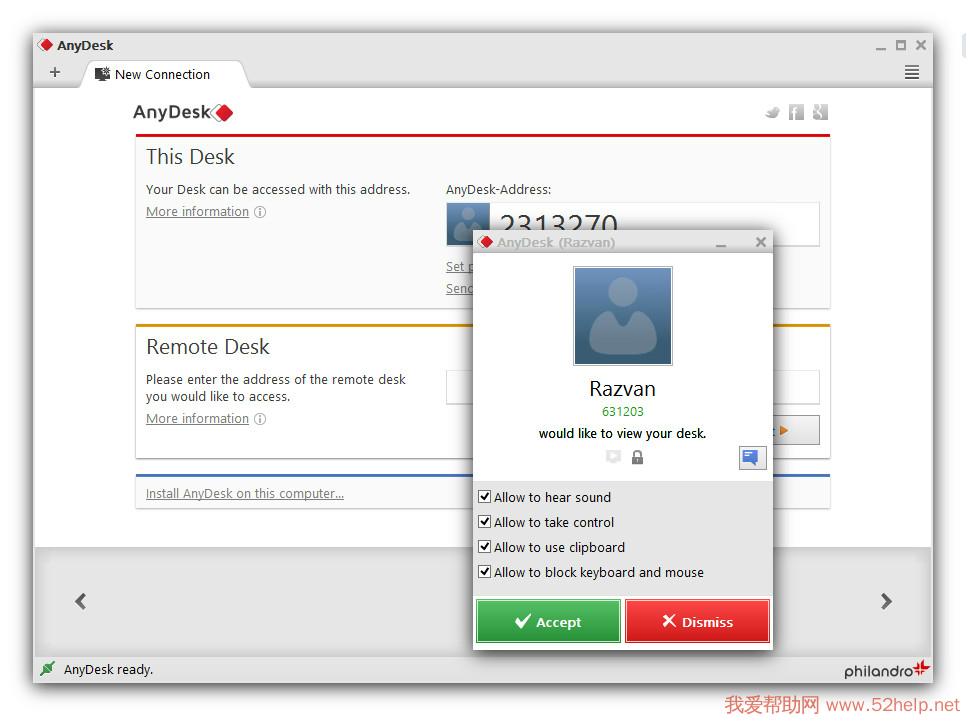 AnyDesk结合了远程控制、全方位的远程管理、高级的文件传输功能和强健的安全性,可以提高技术支持效率并减少了呼叫次数。免费软件,并且操作非常方便,支持windows和Linux各种平台,支持远程复制粘贴。