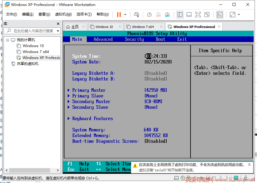 在主界面中点击 虚拟机-电源-打开电源时进入固件 即可进入BIOS界面
