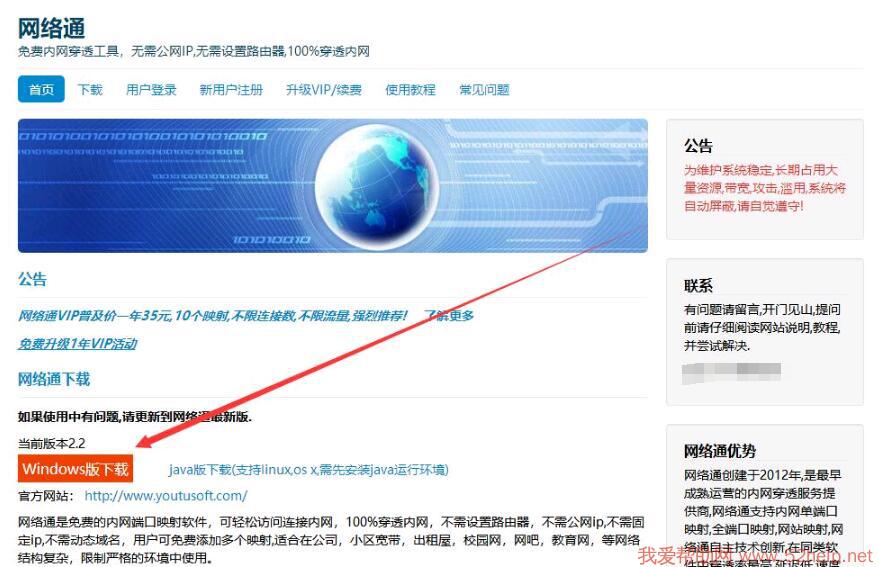网络通自称永久免费内网端口映射(美国线路),内网穿透软件,可轻松访问连接内网,100%穿透内网,不需设置路由器,不需公网ip,不需固定ip,不需动态域名,用户可免费添加多个映射,适合在公司,小区宽带,出租屋,校园网,网吧,教育网,等网络结构复杂,限制严格的环境中使用。感觉有用的可以试试。
