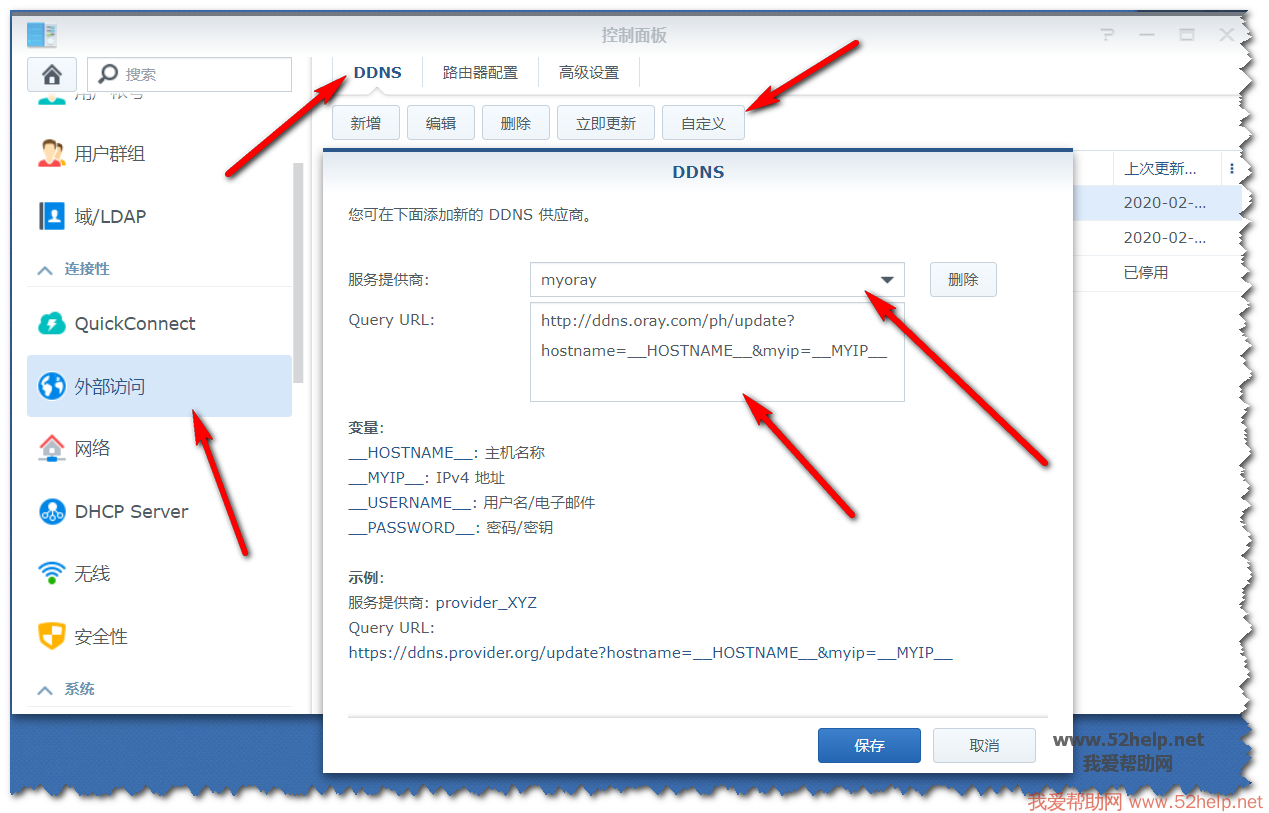 2.登录群晖,在控制面板,外部连接,ddns , 单击自定义