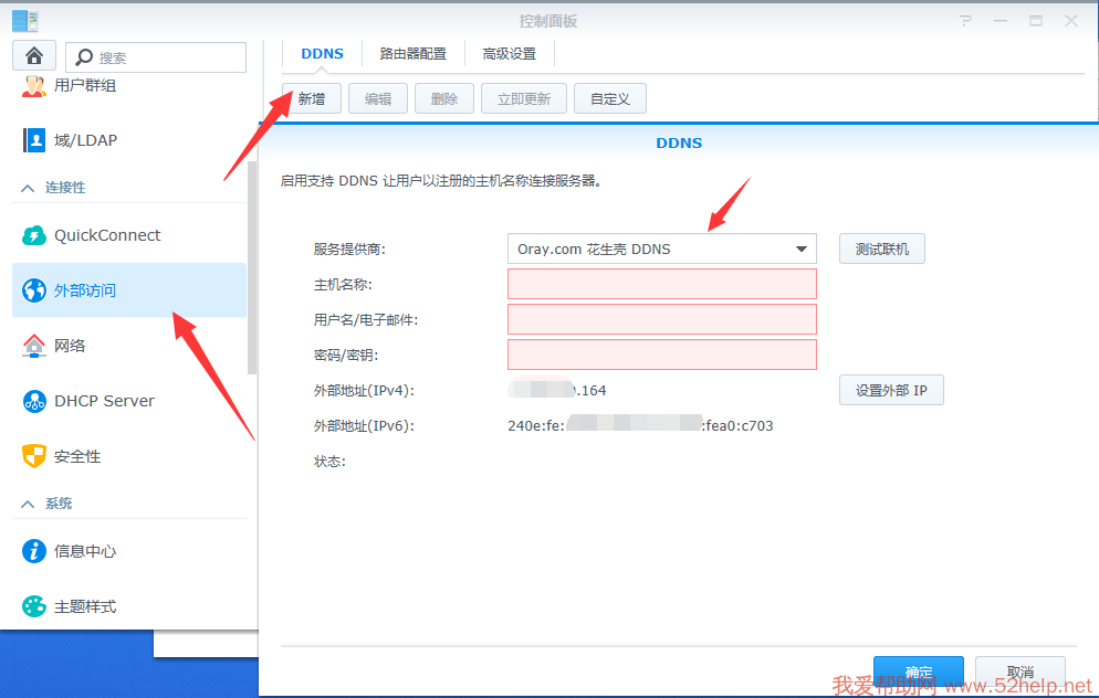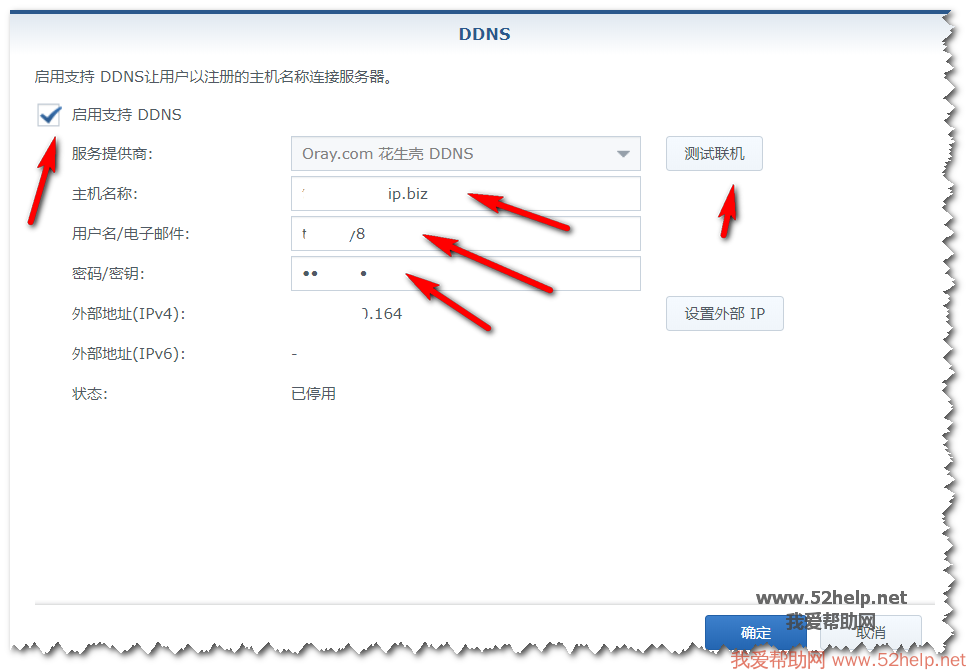 群晖里使用oray花生壳动态域名或3322(pubyun公云)动态域名