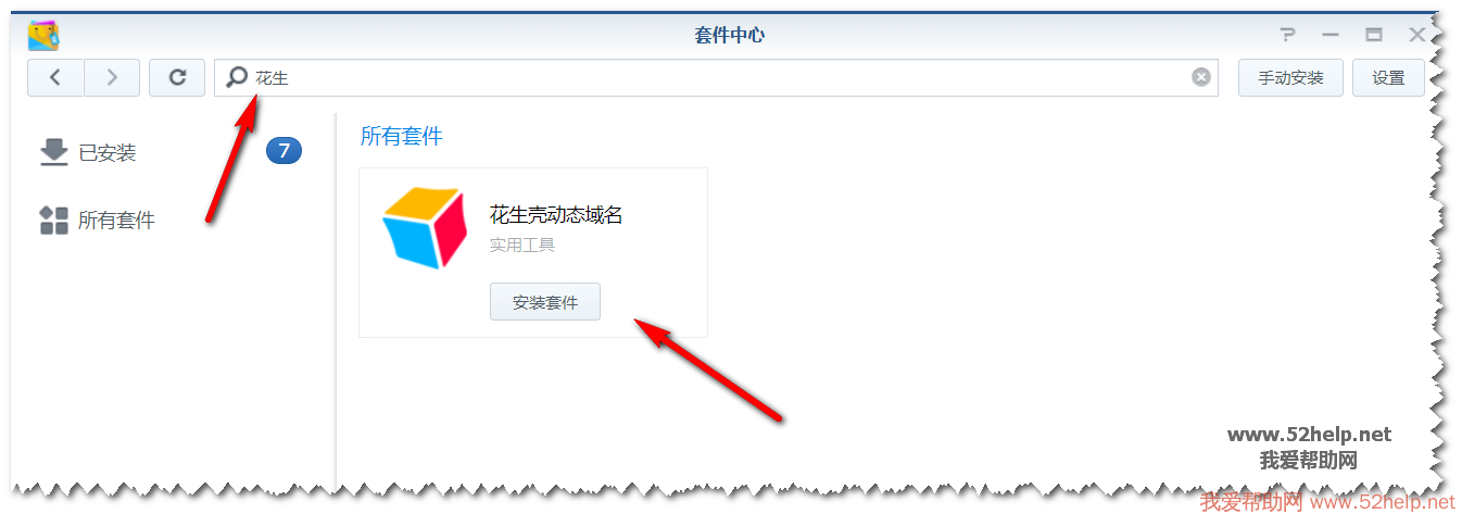 1.有些群晖的版本是在套件中搜索 花生壳 或拉到最后可看到 花生壳 套件,安装即可