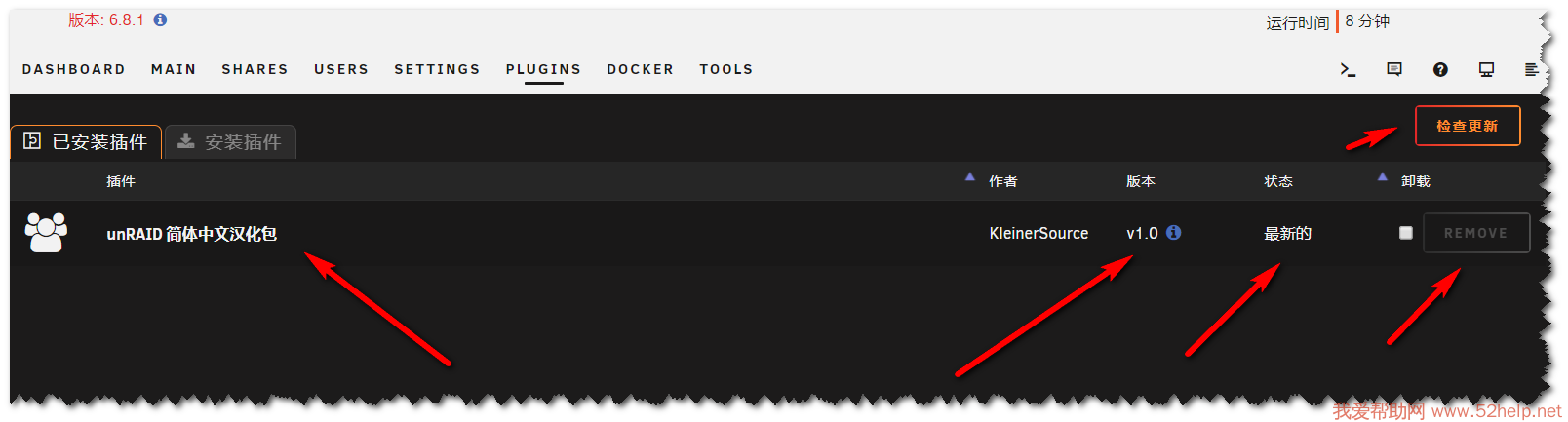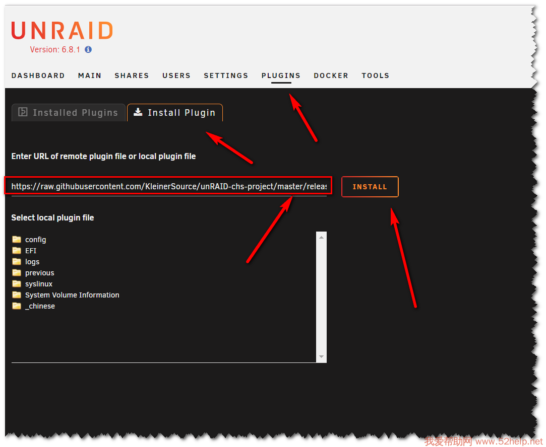 1. unRAID 汉化插件 6.8.1 插件安装源