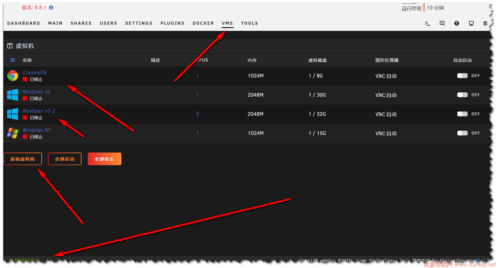 unRaid中文汉化版一直存在一些小问题,不太稳定,如常出现VMS菜单丢失,无法使用虚拟机