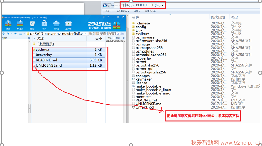 6双击下面附件中这个压缩包,解压里面的文件覆盖到ssd硬盘根目录下的同名文件(如图所示)